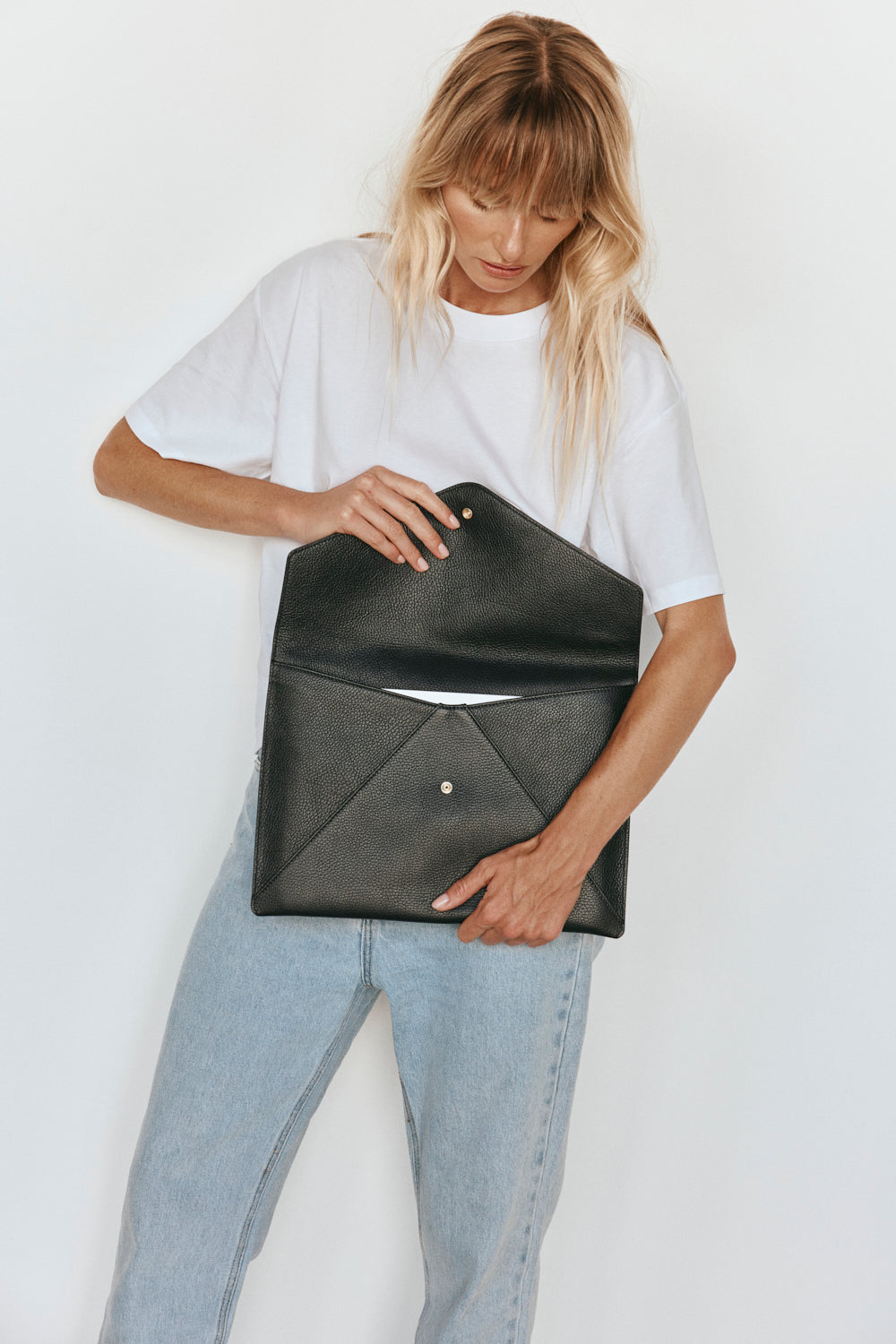 Constructed from premium Italian pebble leather, with an envelope design that offers a secure magnetic closure. Stay organised with the external pocket, perfect for housing up to A4 size files.